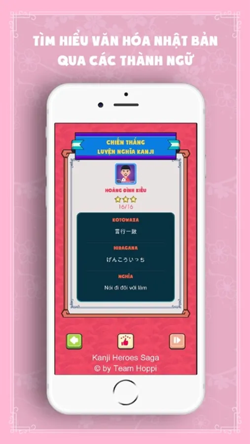 ► Kanji Heroes Saga là ứng dụng học Kanji tiếng Nhật tốt nhất kết hợp Flash Card và game trắc nghiệm. Người học sẽ chơi game và vượt qua những câu đố về cách đọc, âm Hán Việt và cách viết Kanji trong tiếng Nhật giúp trau dồi vốn từ vựng tiếng Nhật, chữ Hán tiếng Nhật để chuẩn bị cho các kỳ thi và cả giao tiếp.
