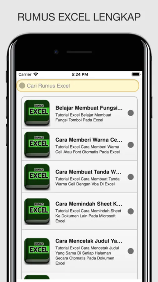 Buat kalian yang sedang mengalami kesulitan belajar ms excel, tak ada salahnya mencoba aplikasi sederhana ini. Aplikasi Rumus Excel Lengkap ini menyediakan tutorial komplit berbagai rumus excel dan cara penggunaannya. Semua lengkap, mulai dari pengetahuan dasar tentang excel, cell, tabel, range, formula, fungsi teks, fungsi logika, fungsi analisis keuangan, hingga penggunaan macro dan sebagainya. Berikut beberapa fitur yang bisa anda dapati di dalam aplikasi ini:# 230++ tutorial rumus excel lengkap
