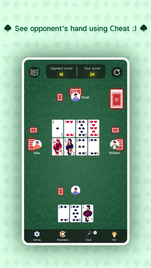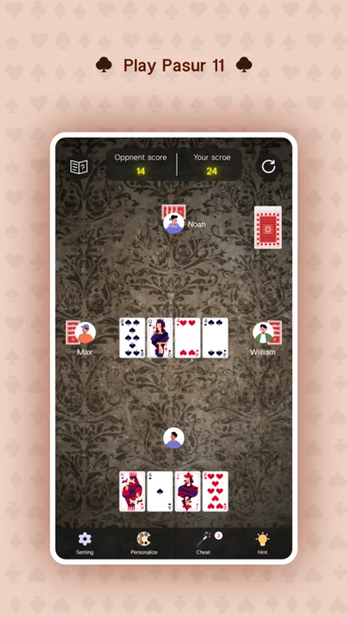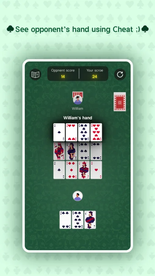 - Highly intelligent AI: Playing against clever AI, you can challenge your Pasur skills. AI has no idea about your cards, and it analyses the game itself. Can you beat it?
