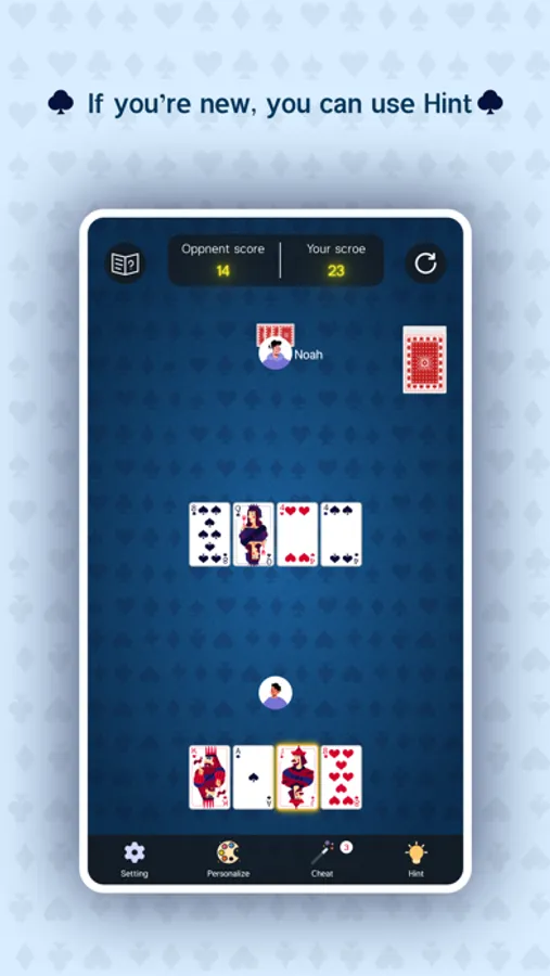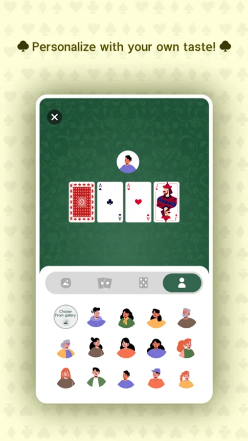 Personalize: Change the appearance of the game with your own taste! You can choose your own avatar, deck type, card backgrounds and game background as you like.