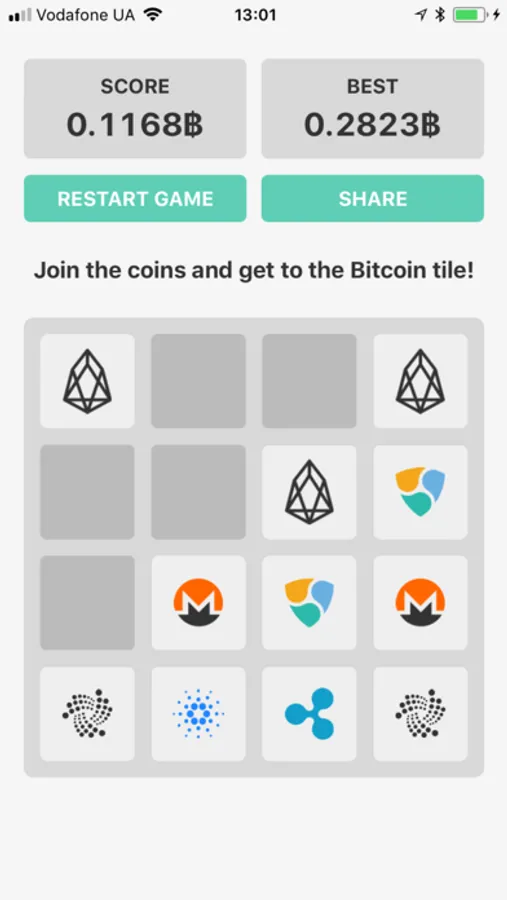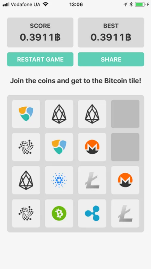 We did not change the gameplay much, but we presented all the tiles in the form of logos of the most popular cryptocurrencies. In addition, we sorted all the crypto-currencies according to their market capitalization. So in the end, by manipulating the tiles, you need to collect the most expensive coin - Bitcoin.