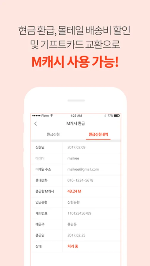 5. M캐시 현금으로 환급신청