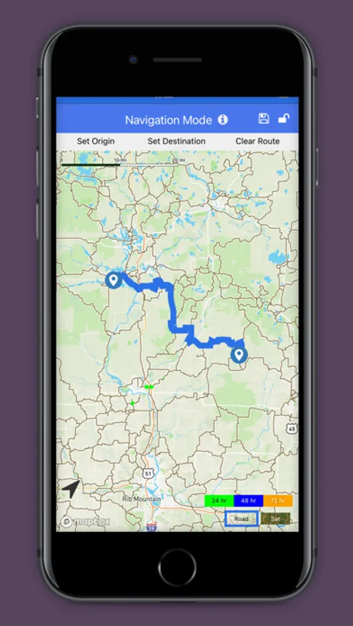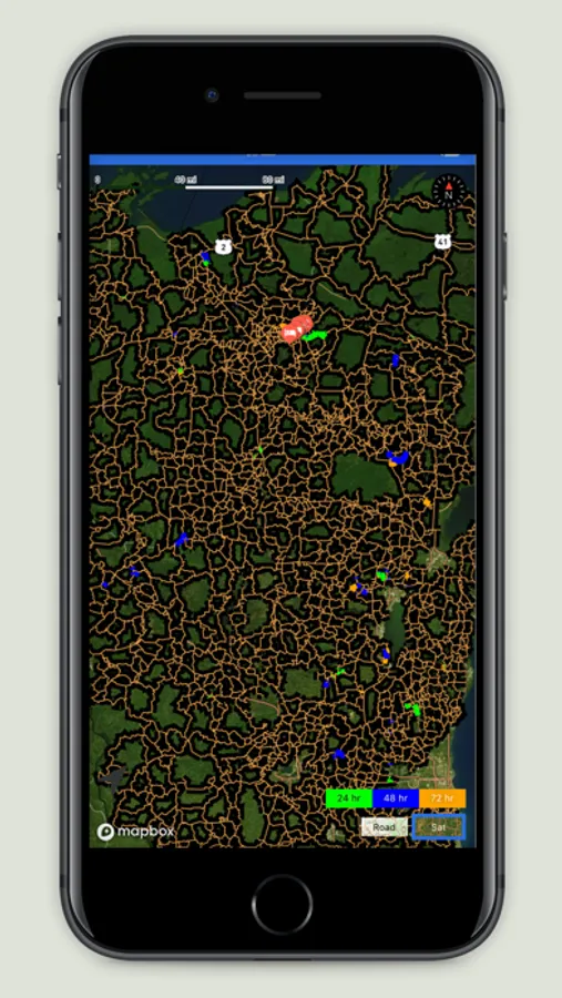 - Displays Trails in different colors base on the last time the trail was groomed (Green = 24 Hrs, Yellow = 48 Hrs, Red = 72 Hrs)