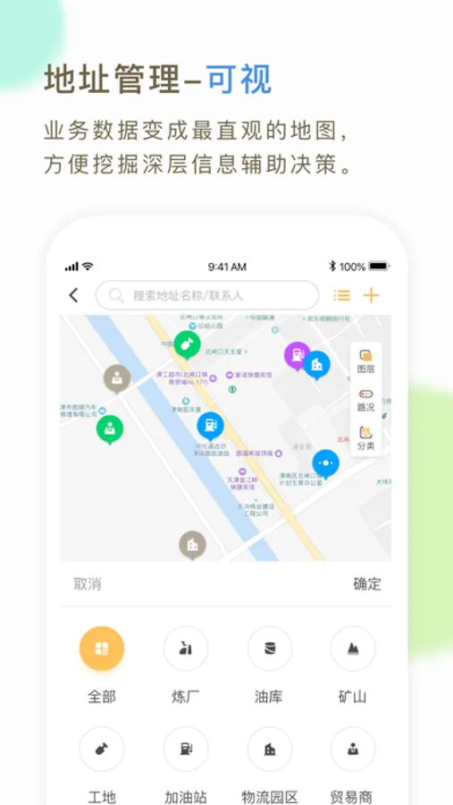 全程可视化:通过卫星定位系统,在运输过程、车辆位置、订单信息签发签收、车辆异常上报等方面,提供全程可视化监控。