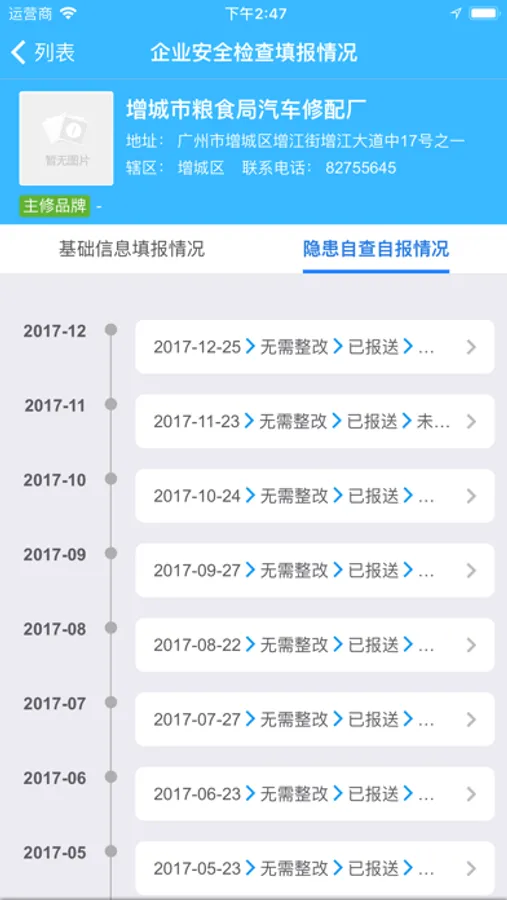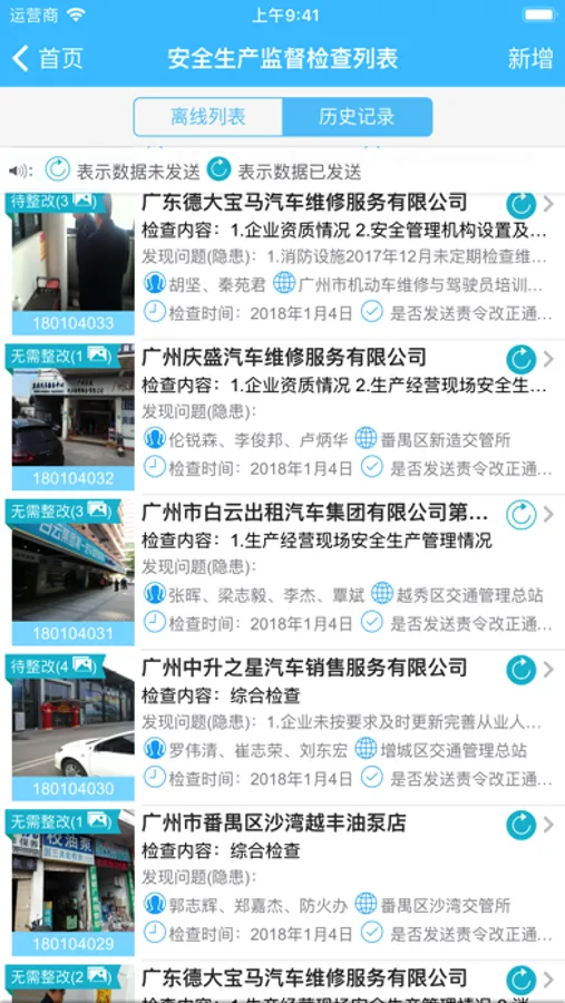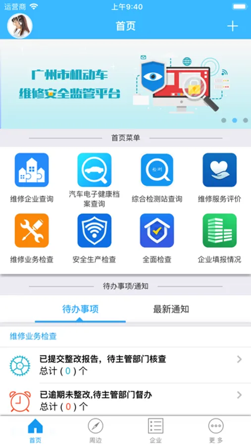 维修管理平台APP是在原广州市机动车维修行业综合管理信息平台的基础上建立的APP系统,其功能主要有维维修企业端的事故隐患自查自报、安全生产基础信息填报、安全检查常用人员资料的设置,以及交管部门的维修业务检查、安全生产检查、全面检查、企业填报情况等功能。