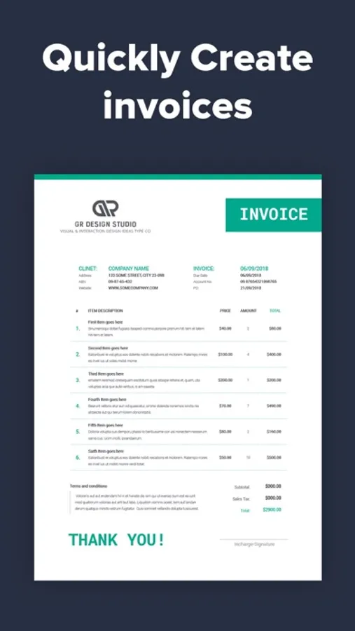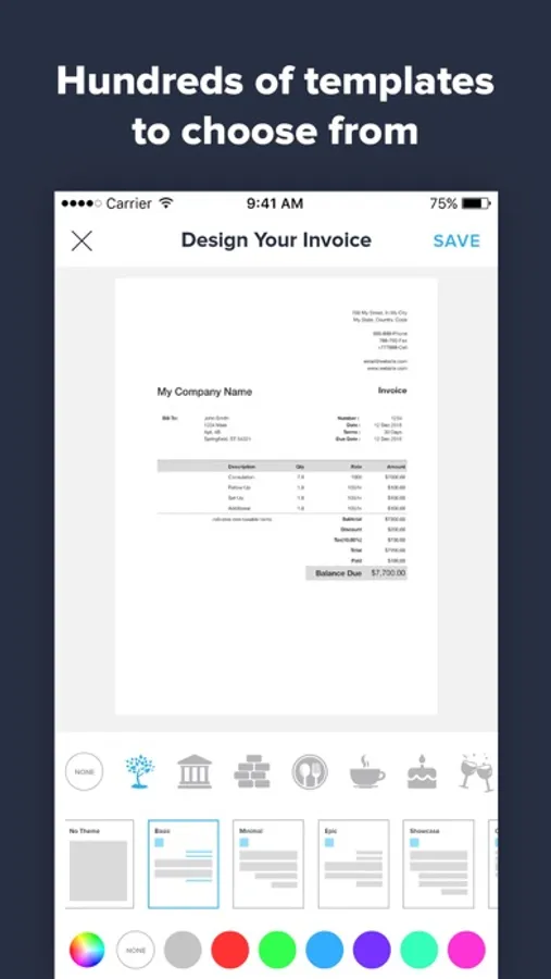 Leave a great first impression with a professional looking, clean and customizable invoice! With Invoice Maker 2, you get numerous customized templates.