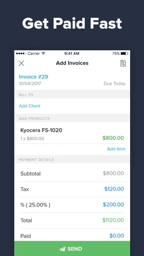 You can now send invoices to your clients asap via email or text.