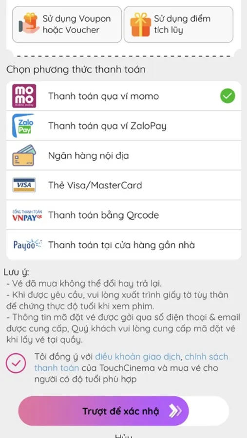 Ứng dụng đặt vé xem phim Touch Cinema Gia Lai.