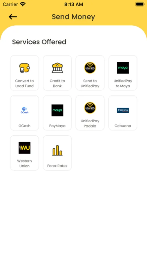 -Unified Products and Services Remittance offers services like Ecash Padala, Ecash to GPRS outlet, Ecash to Ecash, Ecash to Load fund, Ecash to SGD Load fund, Smartmoney, Ecash to MyVisacard, Ecash to VisaCard, Ecash to credit to bank and remittance payouts like Iremit, Transfast and New York Bay.