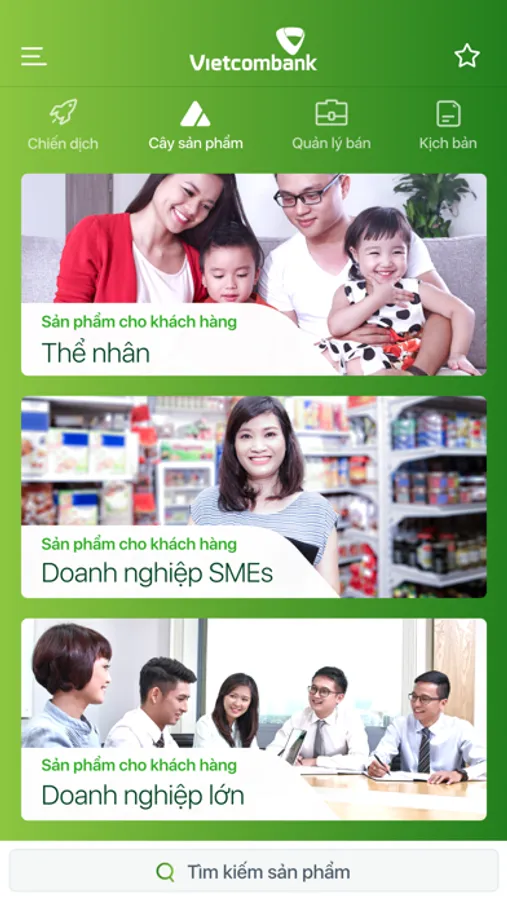 Provide tools to assist Vietcombank staff in product search and customer management.