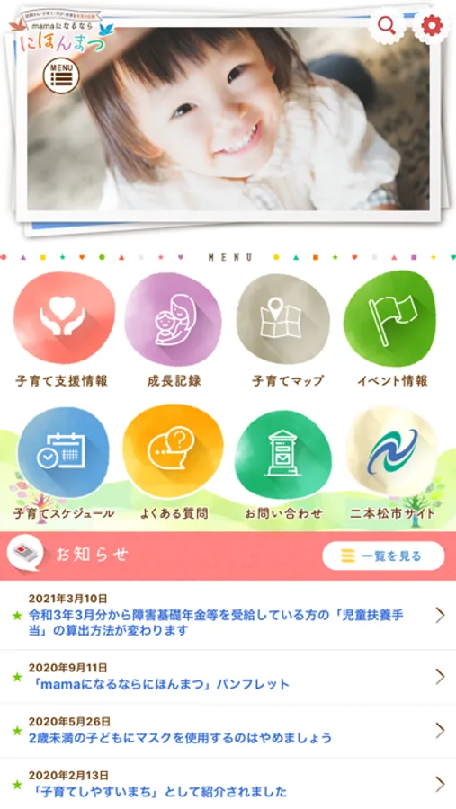 「mamaになるならにほんまつ」は二本松市が提供する公式アプリです。