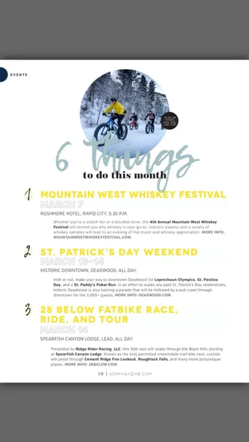 celebrates the latest happenings in South Dakota. Look up events, check out local restaurants and