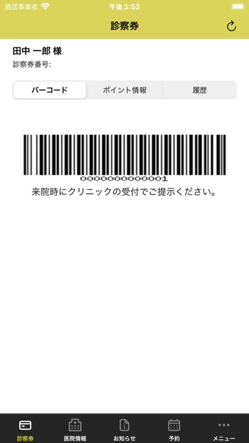 バーコードをかざすだけで受付出来るチェックイン機能、次回ご予約日時表示など、カードレスな診察券としてご活用頂けます。