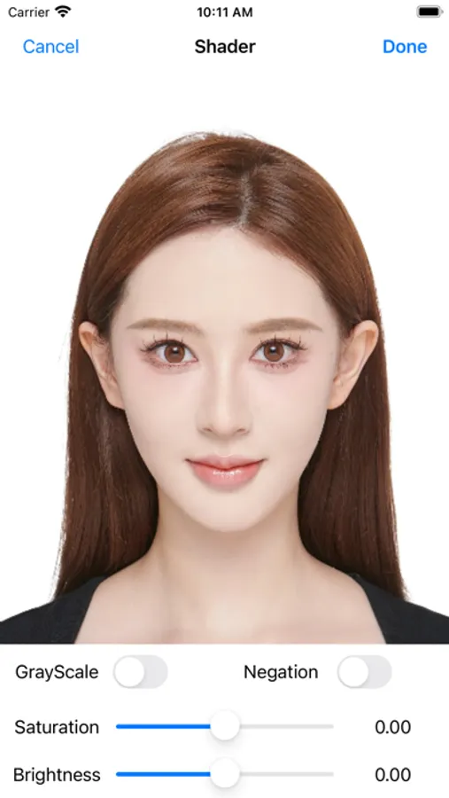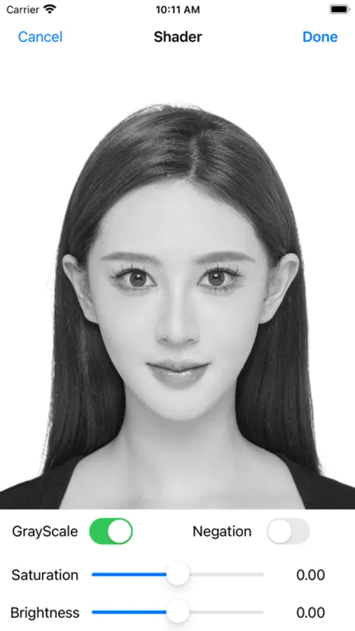 • Support for manual control of the shader effects to your photos, including:GrayScale,Negation,Saturation,Brightness.