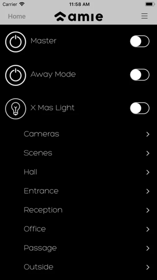 The Amie Smart Home app works with either an existing Amie username and password or by creating a new Amie account. You need to install an Amie Smart Hub device on your WiFi network to create a new Amie account.