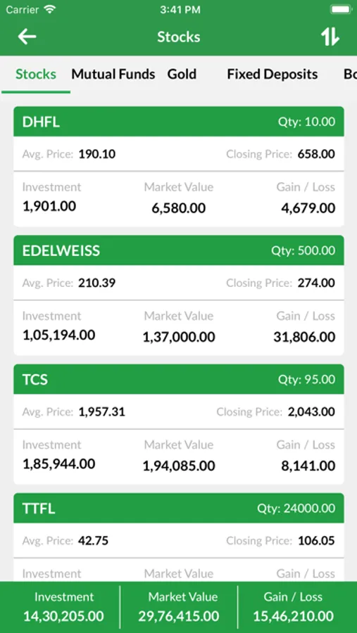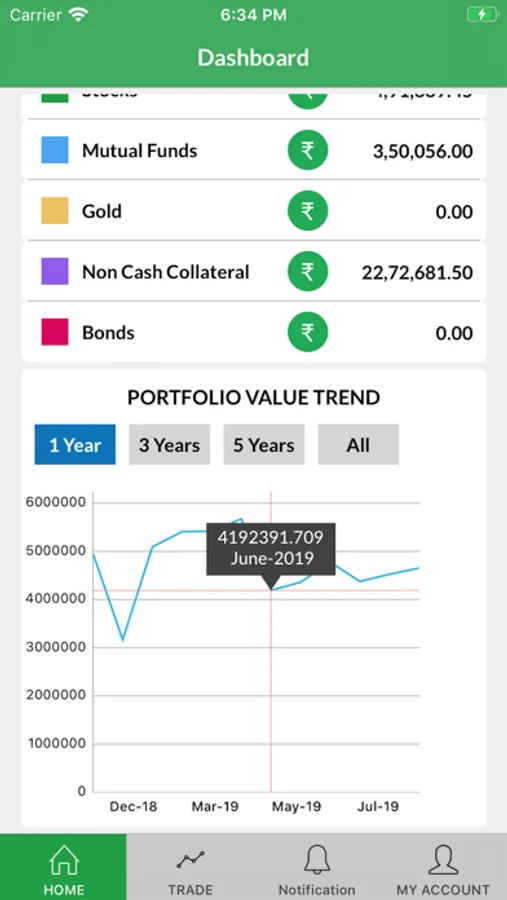 You can view your portfolio bifurcated for various asset classes (Equities, Mutual Funds, Bonds, Gold, FDs) with actual positions with cost basis for quicker transaction decisions. Transfer funds with an ease using embedded payment gateway for hassle free transactions. Create alerts to track stock movements even when you are not in front of the screen.