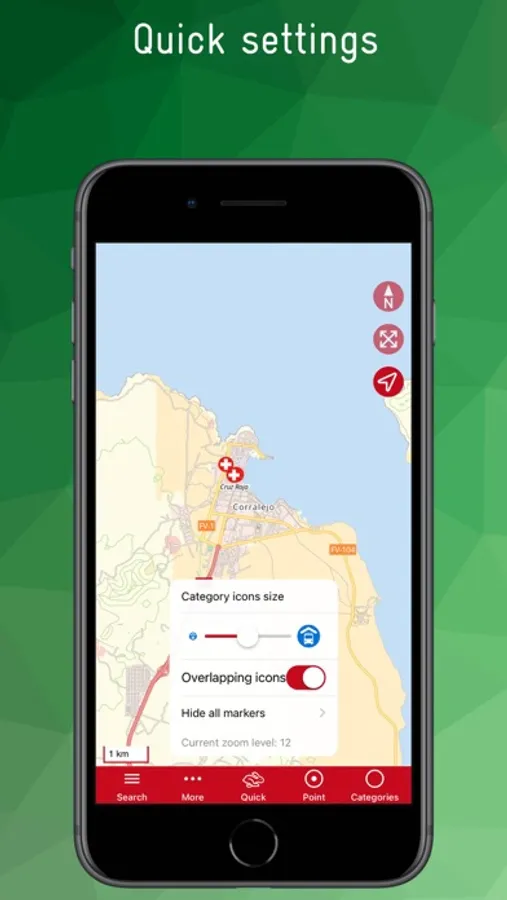 POIs are grouped into categories and can be displayed as layers. For example, you can display all restaurants, public transport lines, banks, hiking trails, charging stations and doctors on the map. The size and overlap of the icons can be adjusted to improve clarity.