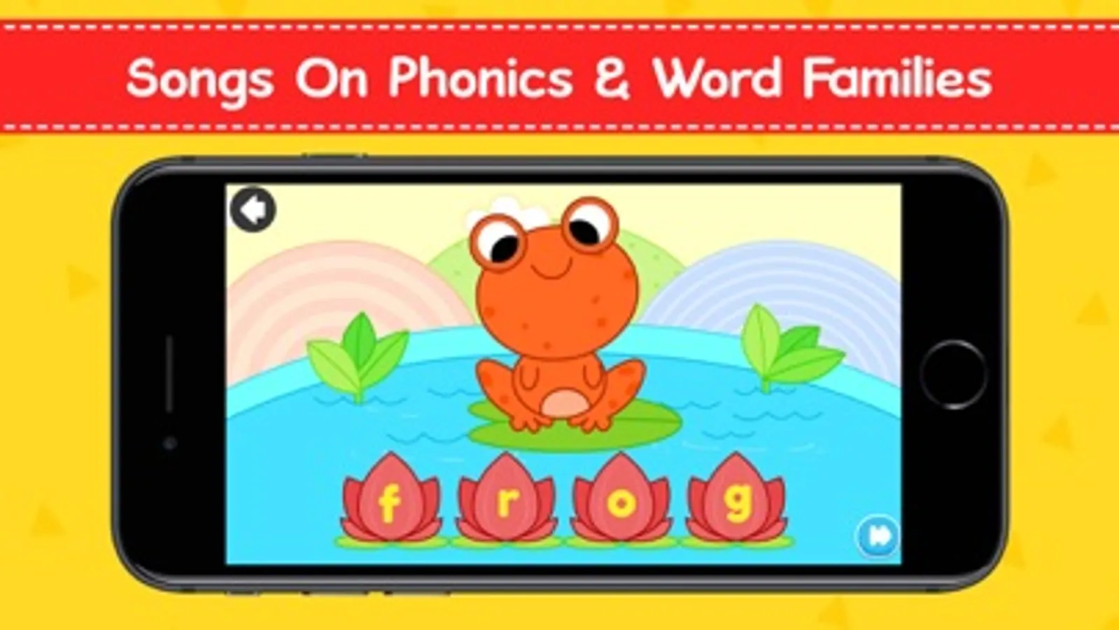 3) WORD FAMILIES: Play and learn with songs on two letter sounds such as ed, ad, im, op, and others.
