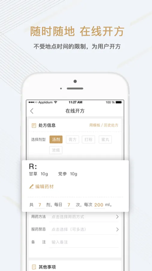 自2016年以来,金草中医逐步在全国6个城市设有配药煎药为一体的自营城市医馆,入驻平台的医生超过10000名,均为来自大中型医院知名中医和民间祖传名医,累计接诊患者超过1000000人次。预计2020年覆盖30个城市200家名中医加盟医馆。