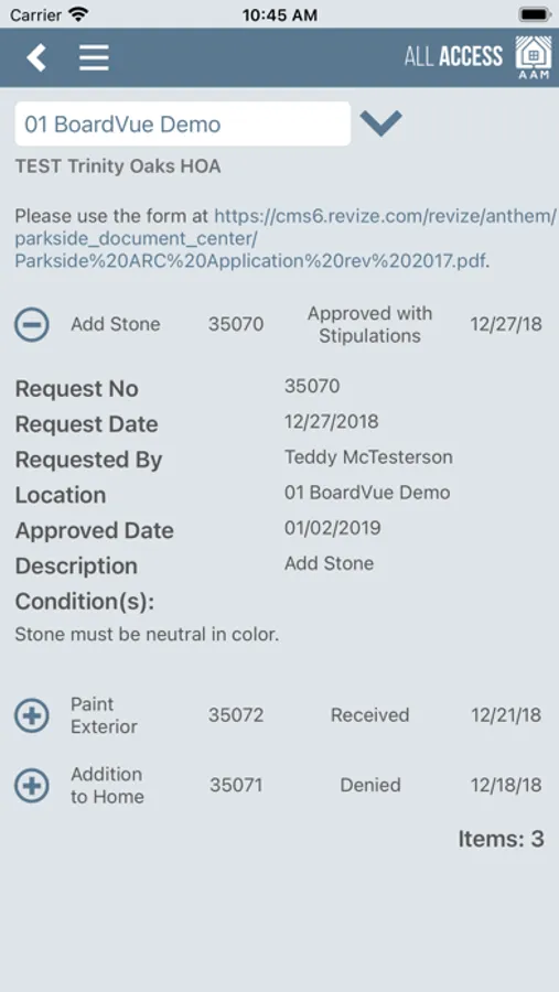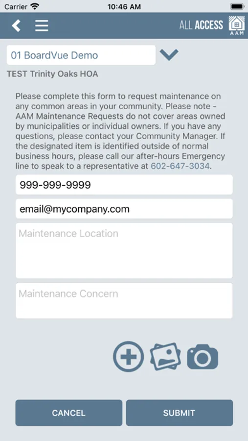 • Submitting Common Area maintenance requests with photos