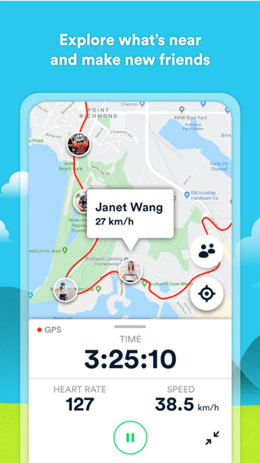 See the real-time location of your teammates, check if they arrived to intermediate stops or finish line on your ride map.