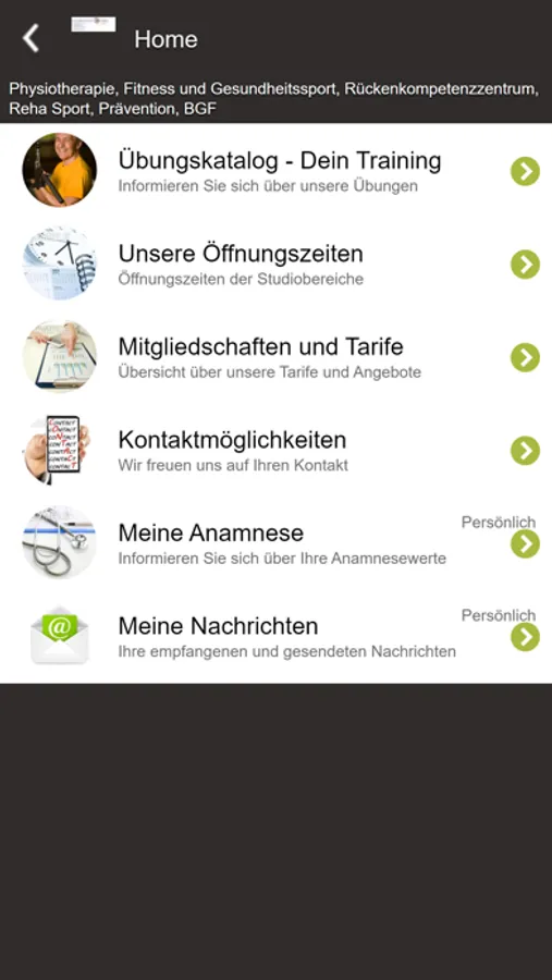 Behandlung, Training und attraktiven Trainingskonzepten auch für zu Hause.