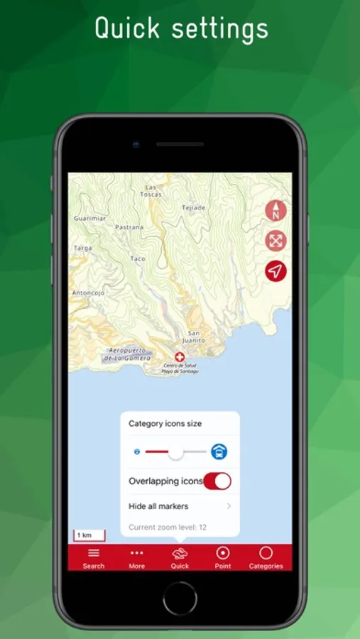 POIs are grouped into categories and can be displayed as layers. For example, you can display all restaurants, public transport lines, banks, hiking trails, charging stations and doctors on the map. The size and overlap of the icons can be adjusted to improve clarity.