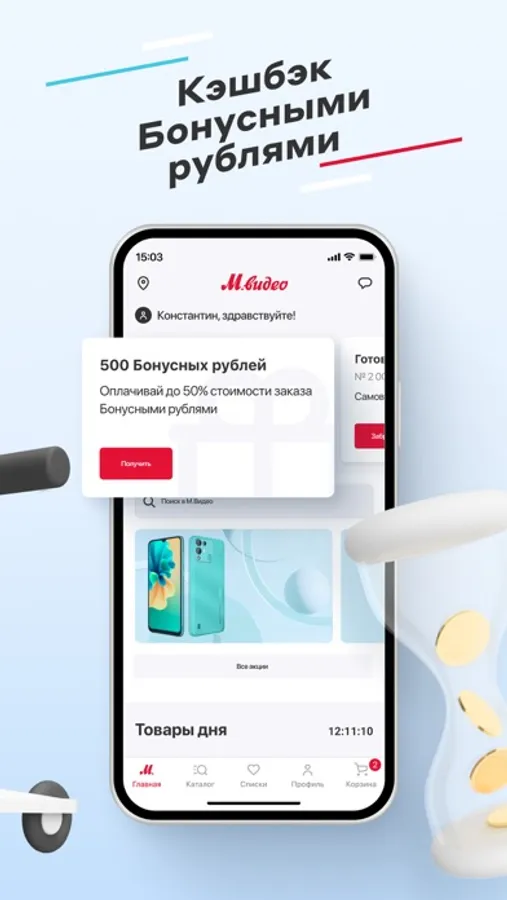 • Узнавать о лучших ценах и персональных скидках, копить Бонусные рубли