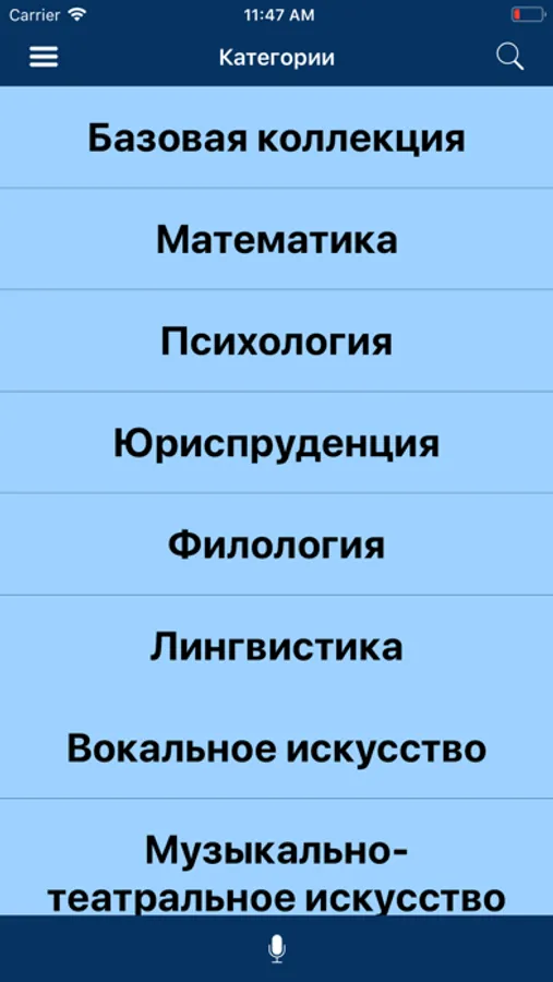 список элементов, выводимый на дисплей, не разбивается на две колонки, что очень важно для подобных приложений. Все элементы расположены последовательно в одну колонку во весь экран, что позволяет легко пролистывать информацию. Приложение снабжено функцией обратной голосовой связи с пользователем: все действия, которые происходят на экране, дублируются в голосовом формате при включенном VoiceOver.