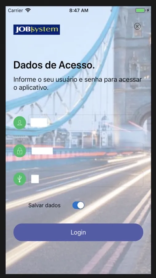 Nota: Para utilizar o JOBMOB com os dados empresariais, você deve ser um usuário do software JCO e com os dispositivos móveis ativados pelo seu departamento TI.
