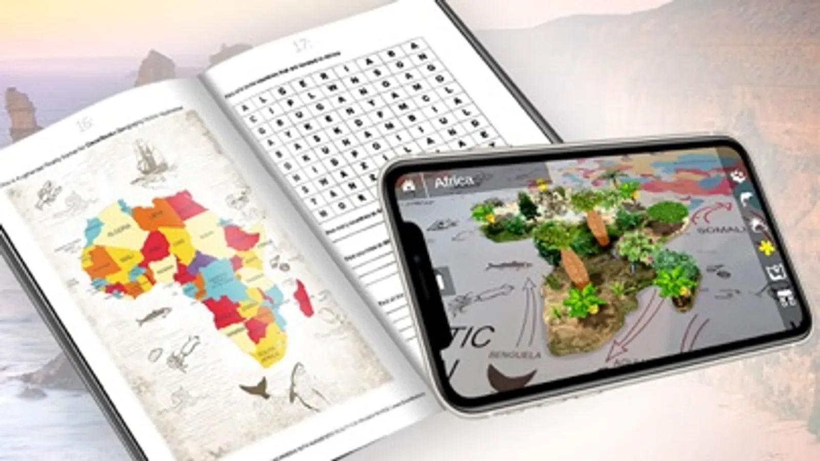 Launch the app and face the camera of your mobile device on the World map or a continent marker from the workbook.