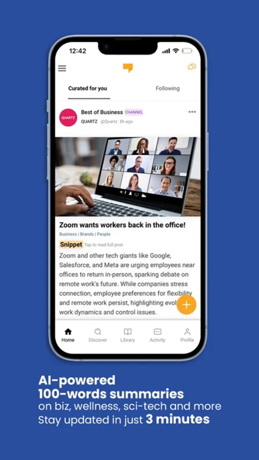 Concise 100 word summaries of curated articles, videos, & podcasts from 50+ global iconic publications & 200+ independent thinkers