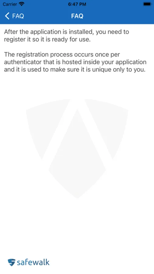After downloading and installing Safewalk Fast Auth on your iPhone, you will need to register tokens in order to activate it and make it unique for you. Your service provider will provide you with appropriate registration instructions.