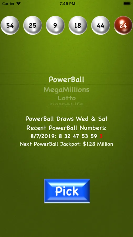 Lotto Numbers will show you the recent PowerBall and Mega Millions winning numbers and help you select numbers for multiple lottery games.