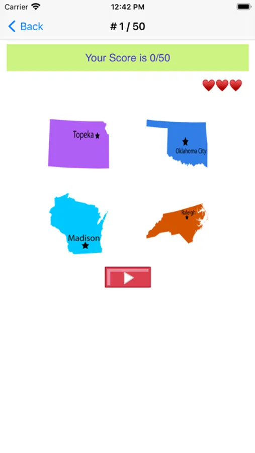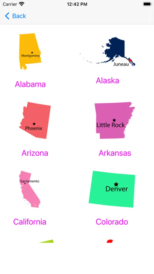 You can locate states on a contour map, match the names of states and their capitals, spell states' names. There is also a quiz mode where you can test your knowledge of US states.