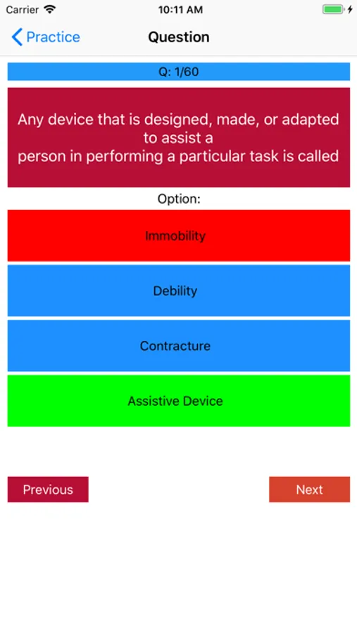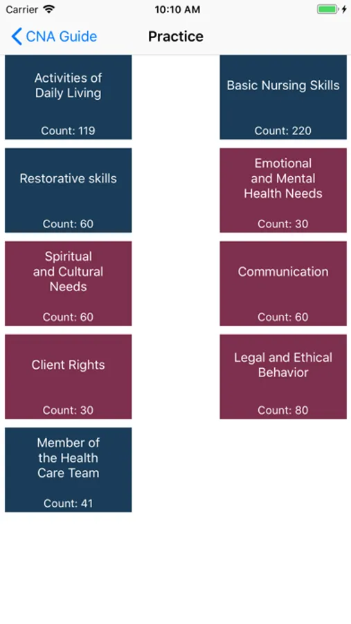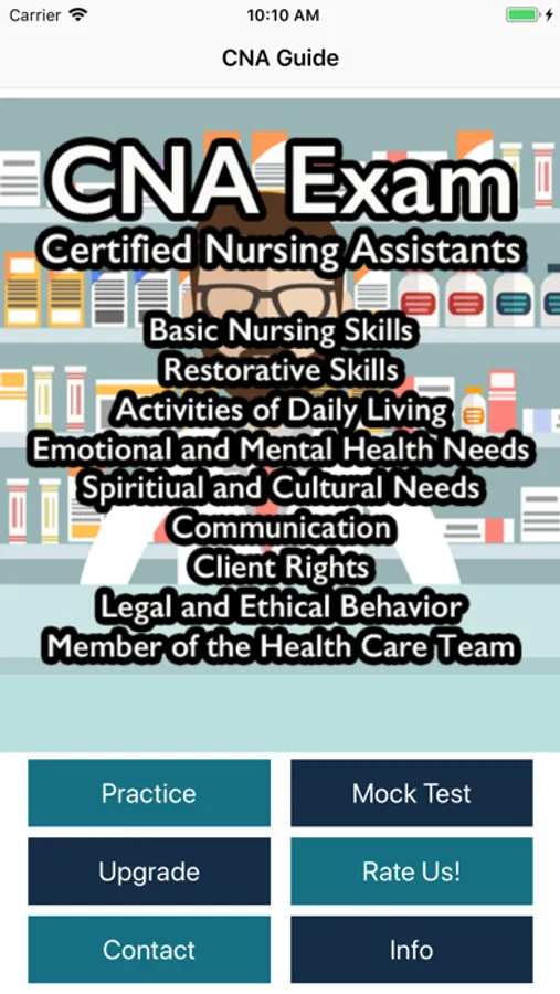This app helps you prepare for the CNA Written Exam which is generally a multiple choice exam.