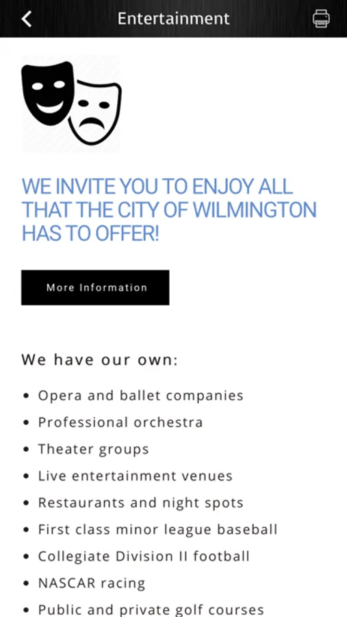 This App contains points of interests, citywide events, restaurants, as well as resources for Visitors, New Residents and Out of State Commuters. We are a tax free state and we invite you to delve into all that the City of Wilmington has to offer.