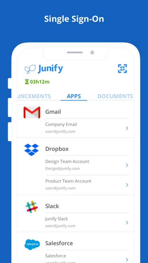 The Junify app allows you to work efficiently with your mobile device or from a computer by integrating single sign on with ease of use of accessing multiple SaaS applications from one place. For companies, it reduces the risk of password loss/sharing and eases the pain of on-boarding and off-boarding staff