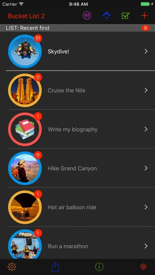Miwaresoft Bucket List reminds you of your list items automatically.