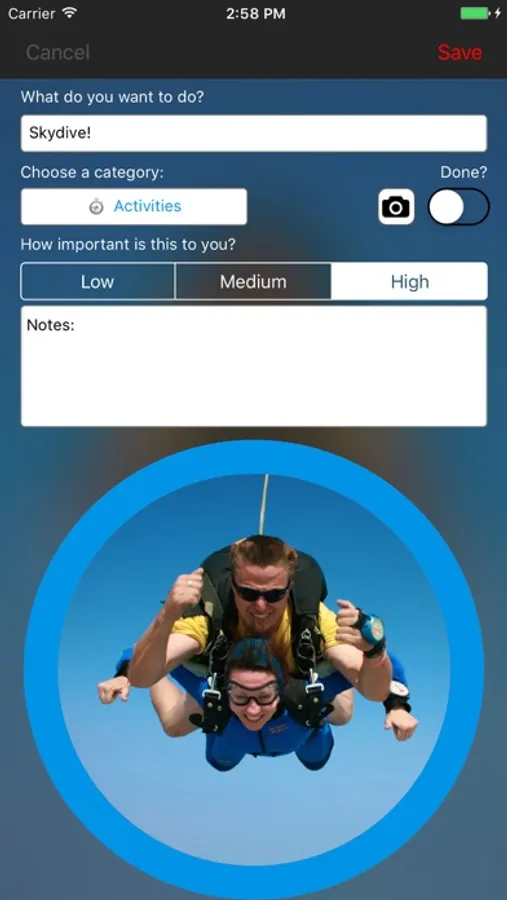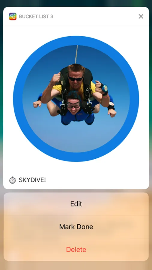 Randomised notifications gently remind you of your bucket list items.