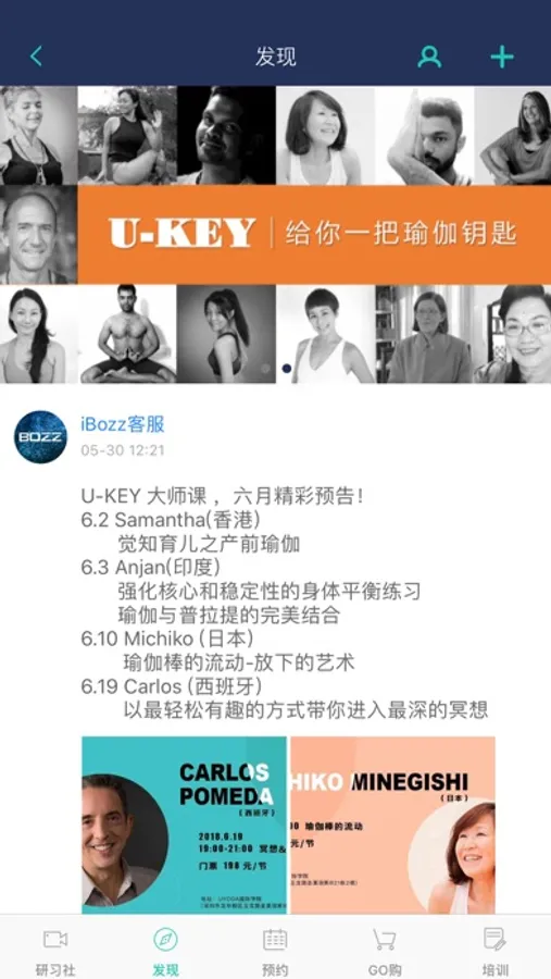 iBozz App is a platform focusing on Yoga and related, covering multiple fields including professional videos, trainings, clubs, instructors, courses, management, eCommerce, social network, smart hardware, etc., on the propose of building a yoga eco system, prompting healthy development of industry, providing one-stop services to professionals and fans.
