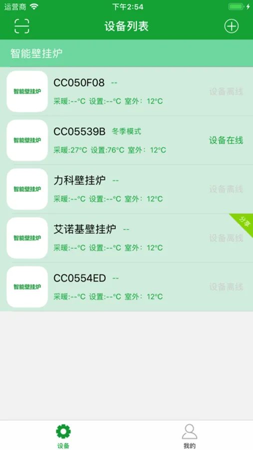 壁挂炉管理,可进行壁挂炉锁定,分享复位,时间校准等管理操作;