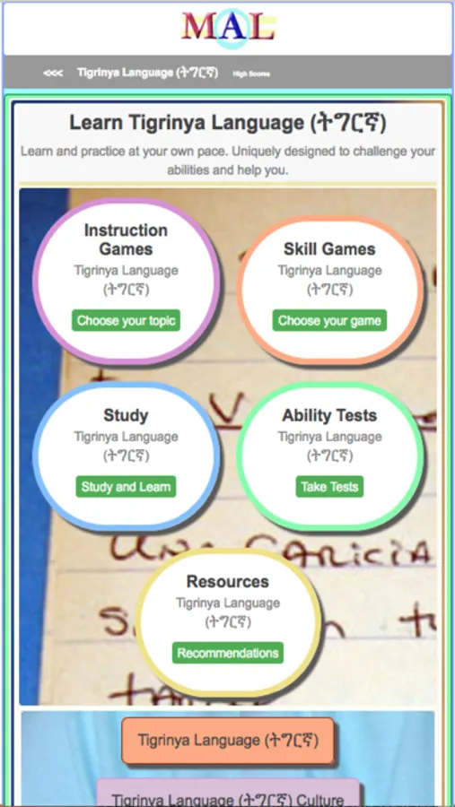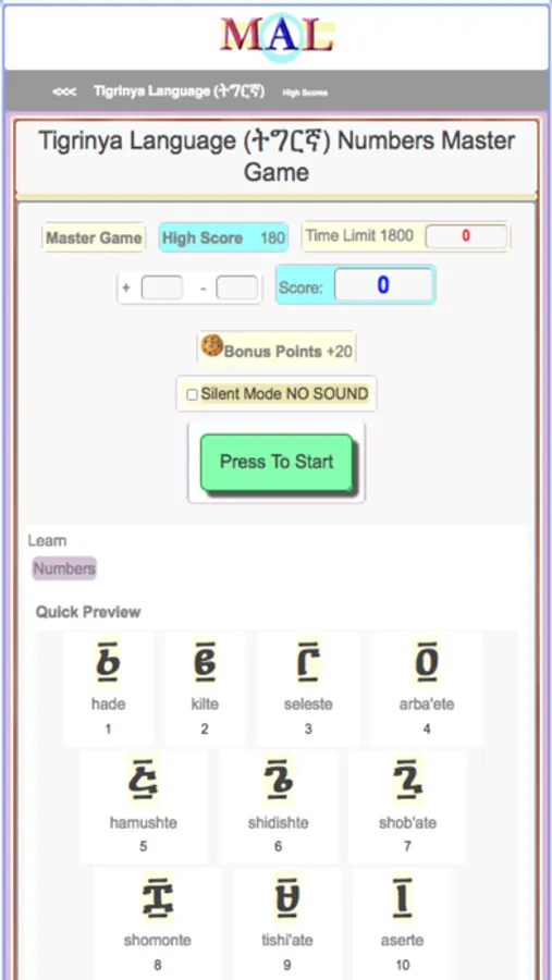 Play Tigrinya Learning Games, Study and Learn with online Flash cards, Take Tigrinya Tests