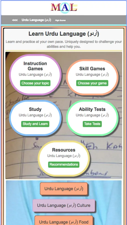 Play Urdu Learning Games, Study and Learn with online Flash cards, Take Urdu Tests