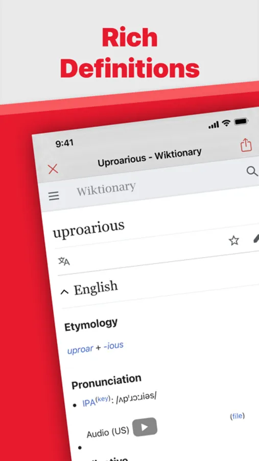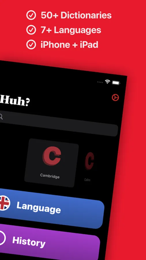 The best dictionary app is one that provides incredible definitions to its users. « Huh? » equips you with a myriad of dictionaries to get that perfect definition. Start searching, and you'll be able to learn and understand every word you will ever encounter.