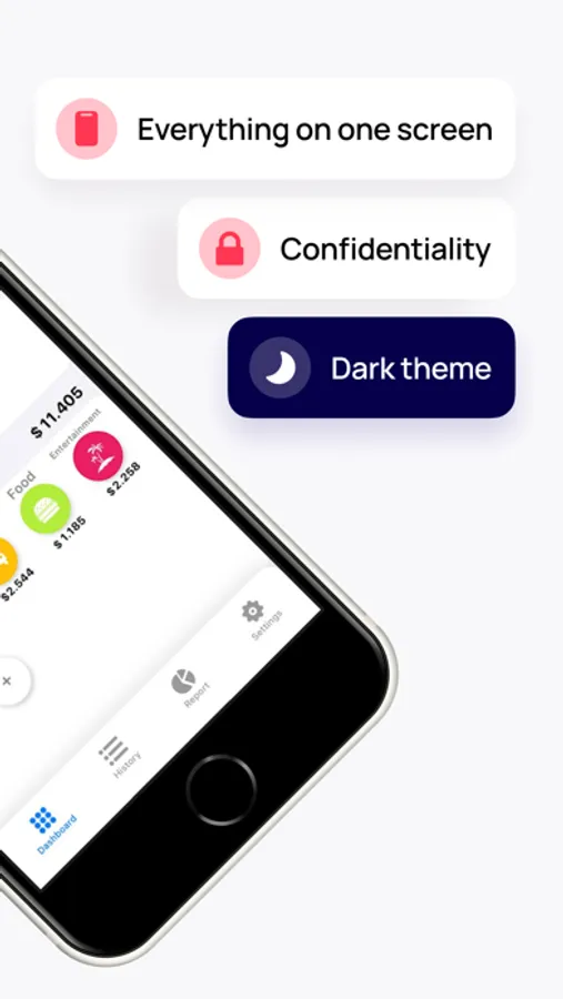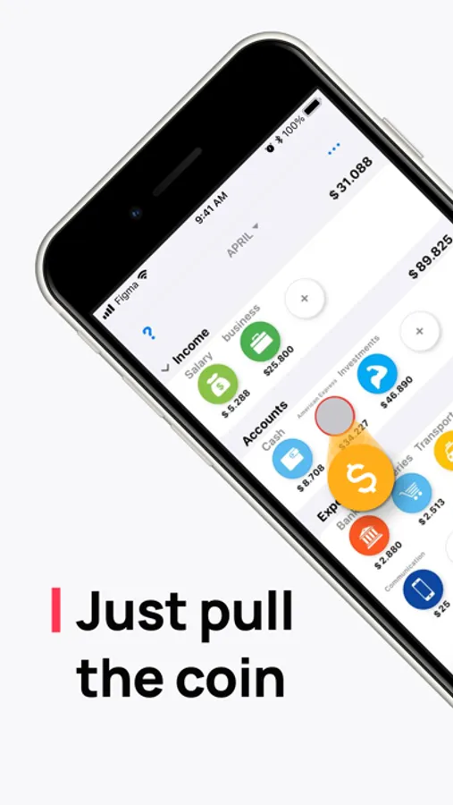 - Quickly add your income and expenses thanks to its amazing interface with coins