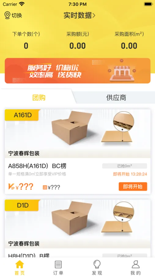 【首页】在首页基于关注关系可以实时看到所关注的销售或采购发布或推送的商品信息及商品详情,一键预约无需等待响应,提高供应效率,增值服务和信用支付为用户提供更好的交易体验同时减轻用户的资金压力;