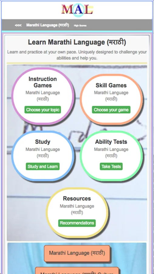 Play Marathi Learning Games, Study and Learn with online Flash cards, Take Marathi Tests