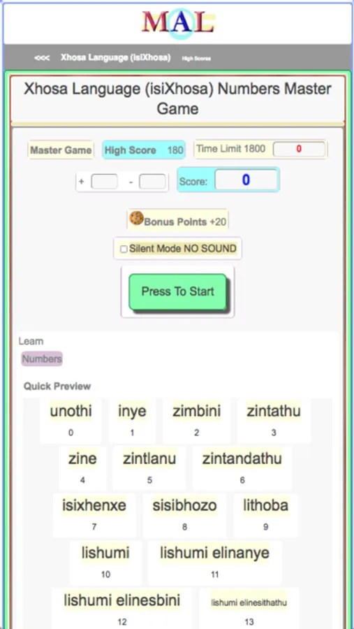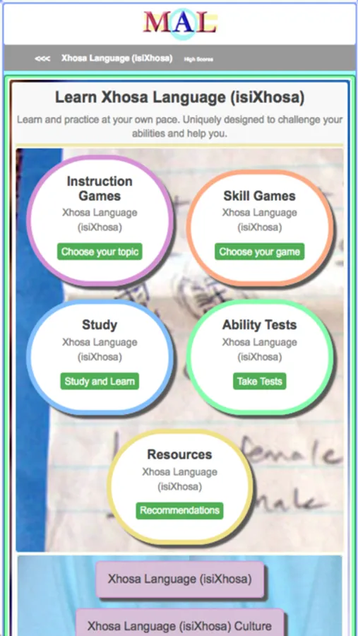 Play Xhosa Learning Games, Study and Learn with online Flash cards, Take Xhosa Tests