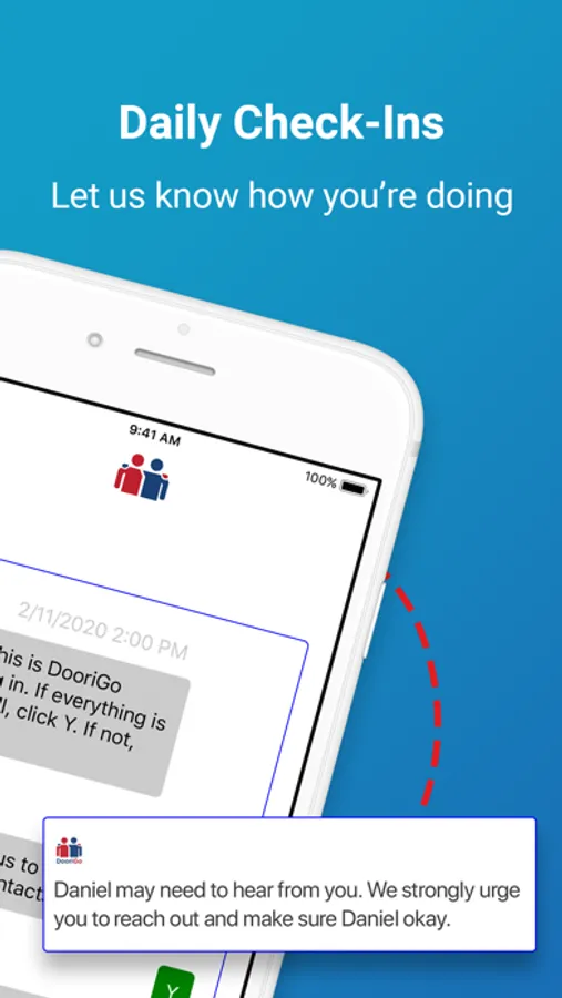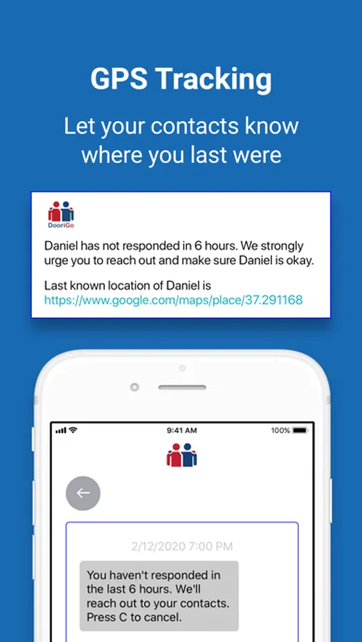 · Emergency Alerts: If you don't respond within your specified response period – between 30 minutes up to 72 hours - then DooriGo will either text or email your contacts, prompting them to reach out and see if you are okay.